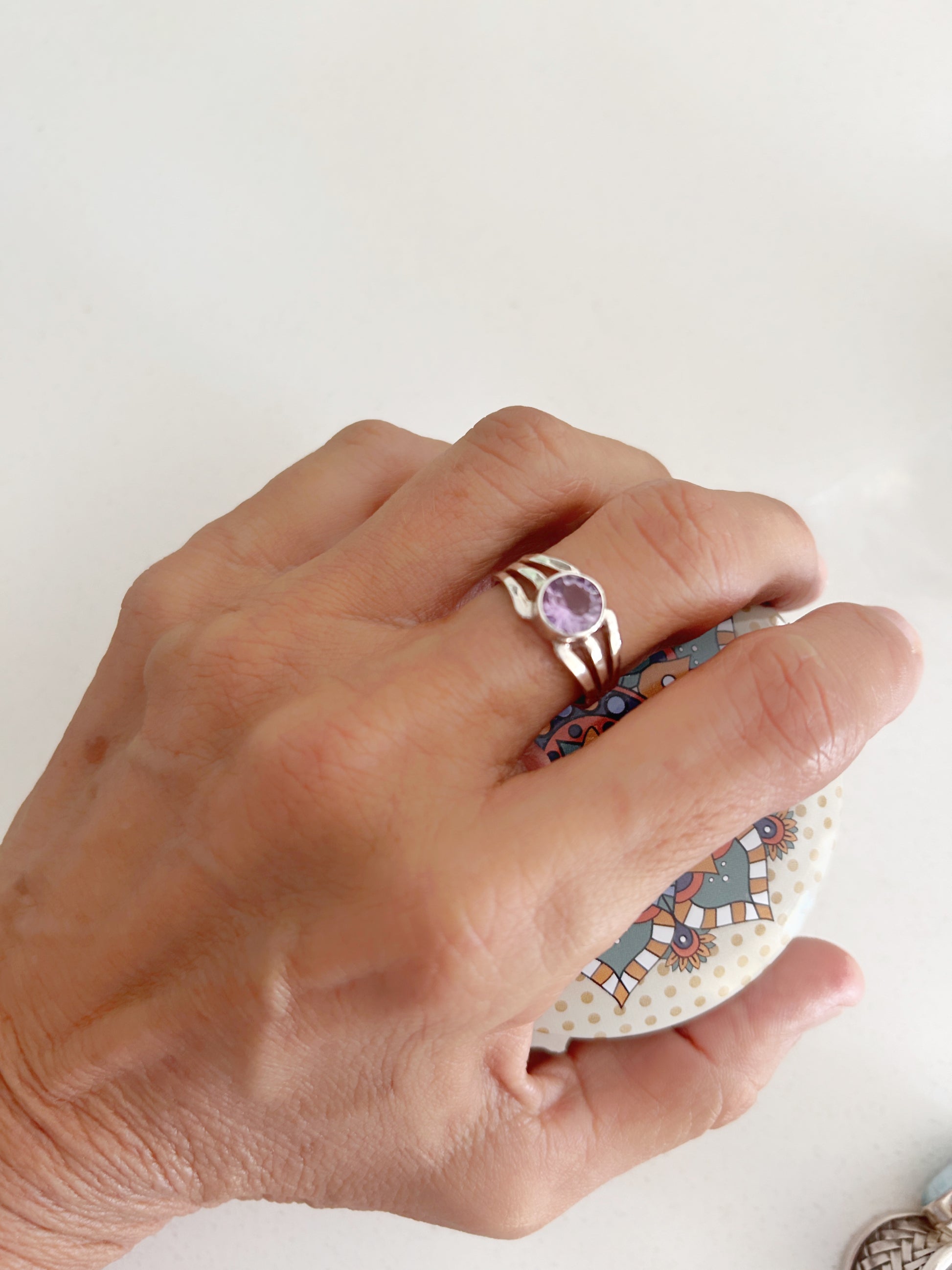 Anillo solitario redondo Amatista